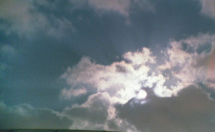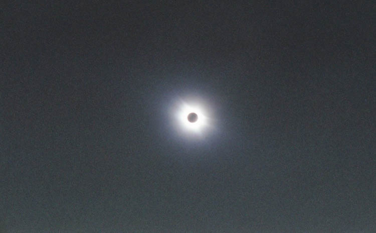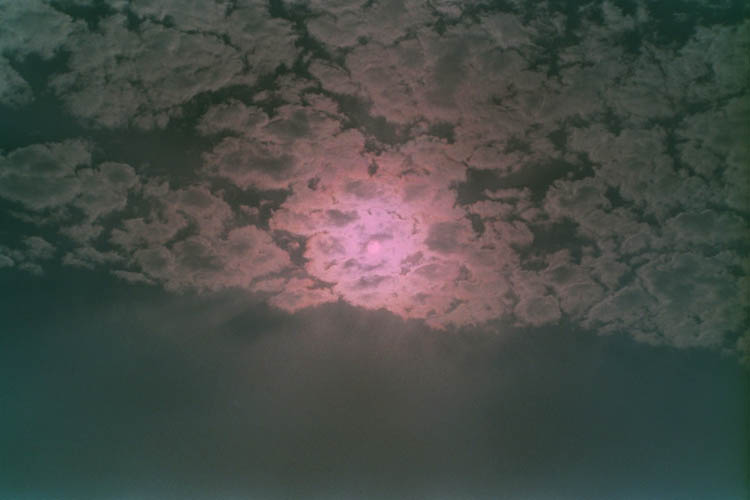 coronae, under a partly cloudy sky. As the Sun passed through transparent