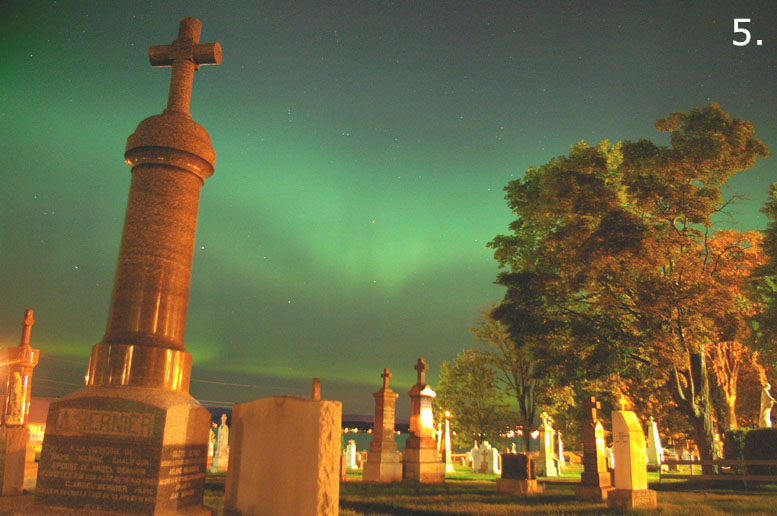 This aurora borealis with purple colors over St-Vallier near to Quebec city Canada captured in april 9 2006 at 4 h 40 am after a painful hunting through a very cloudy night Pentax istDS lens 18mmSee more photos by:Gilles Boutin Lévis Québec Canada |
