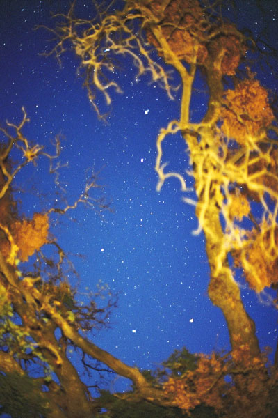 Nikkor 28mm lens at f5.6 for 10 seconds. Fuji 800asa color negative.