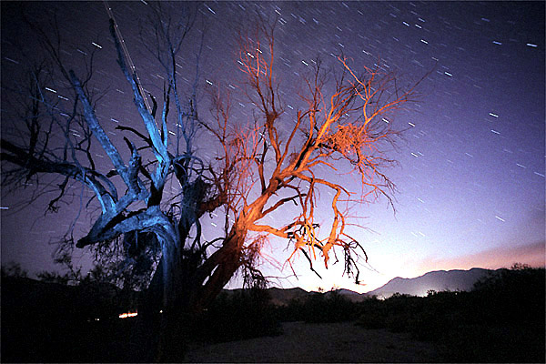 Trails and meteor shot at the Tamarisk Grove Campground in the