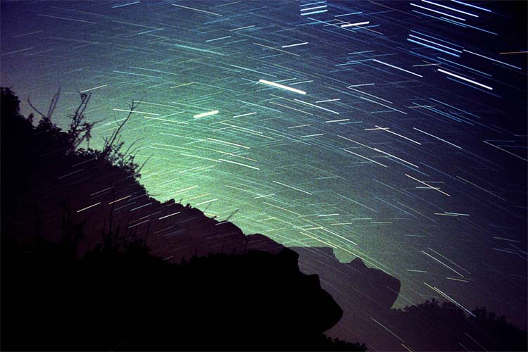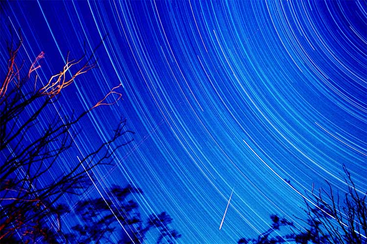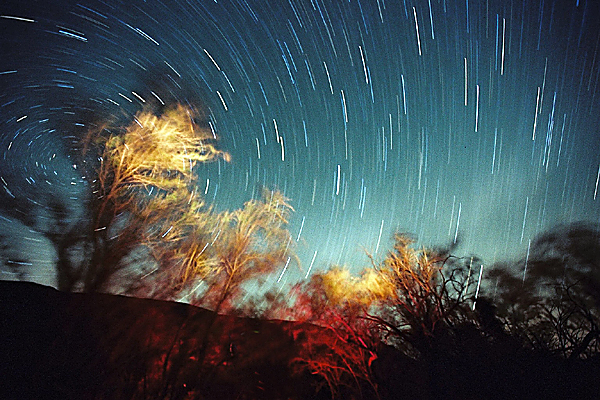 Trails and meteor or shooting star, shot at the Tamarisk Grove
