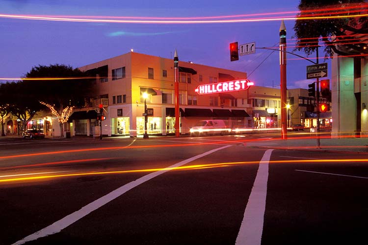 over Fifth Avenue in San Diego's historic Gas lamp Quarter.