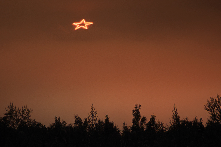 ...bulbs strung up on 10-foot high poles to keep it from being buried by snow. The star is several hundred feet across, and it can be seen