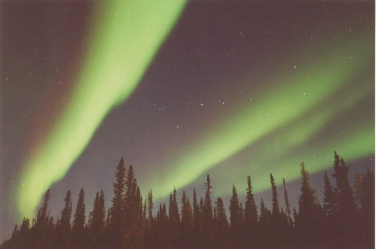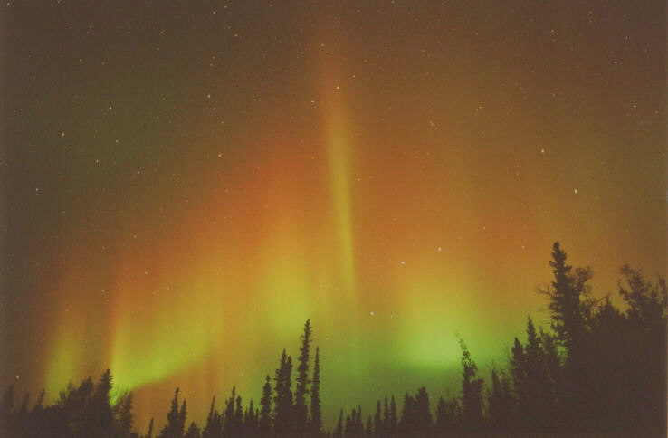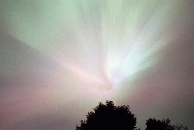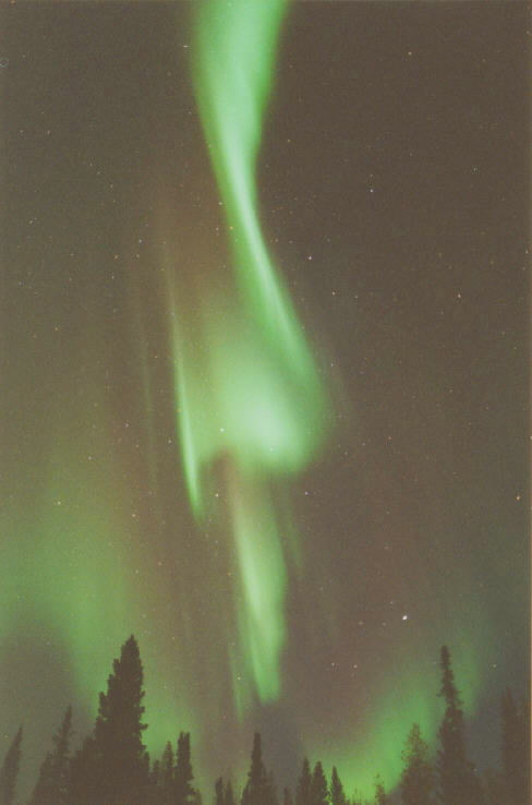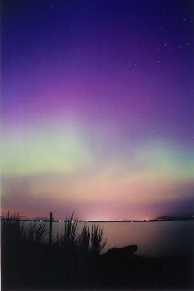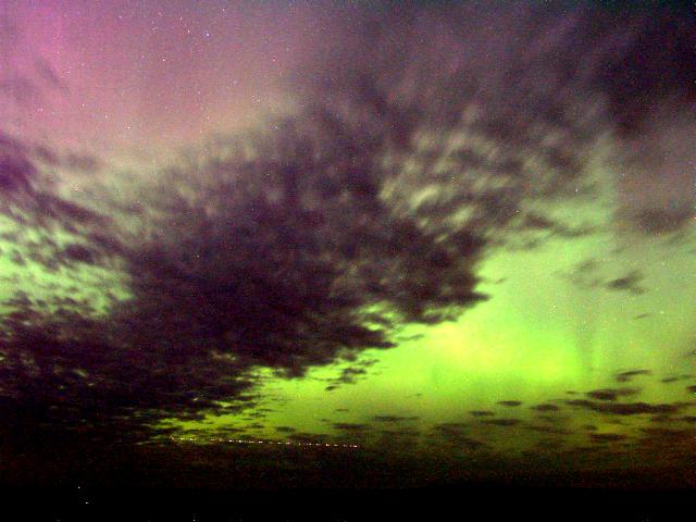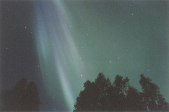 2004/01/25 brief auroral display at 01:00. The temp was around 0 degrees in Two Rivers, WI. This bright curtain shot across the horizon, and faded again 15 minutes later. I was lucky enough to be driving through a rural area with a camera & tripod handy. Canon G2 digital, ASA 400, f 2.0 for 15 sec.See more photos by: Peg Zenko |