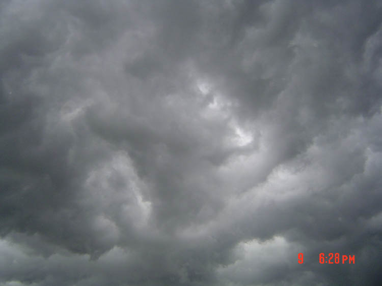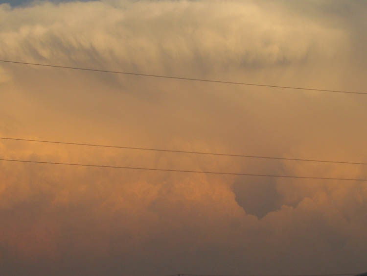 in Center Valley, WI, just before sunset on 2004//06/13. Though it looks like a severe weather system, that is not necessarily the case with this type of cloud. "We thought it looked like an alien spaceship ready to scoop us all up!"e-mail to: Austin Loveless |