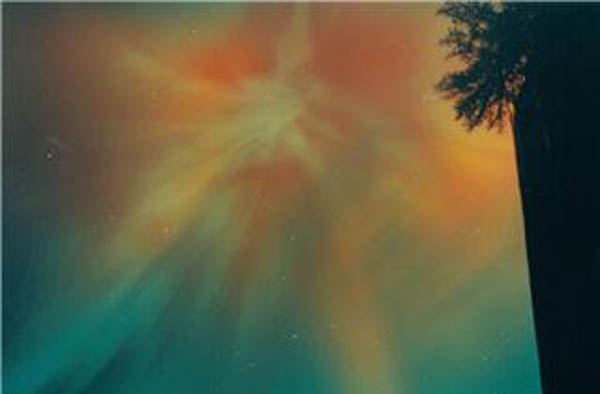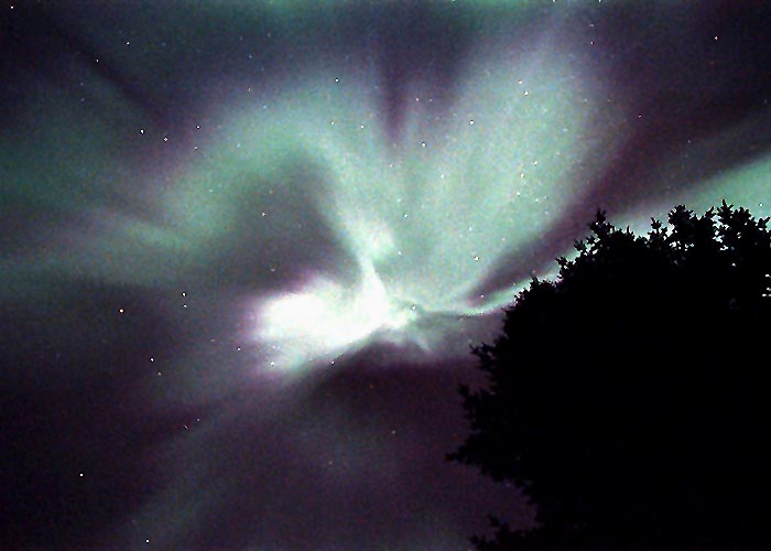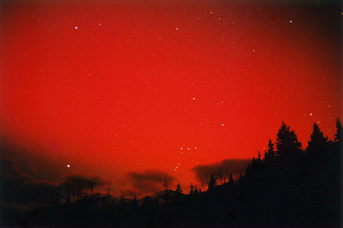 Aurora, August 17, 2003 from Hamilton, Washington, USA. You can see the rayed bands over Mt Josephine even though the photo is overexposed.Wade B Clark Jr - Hamilton, Washington, USA |