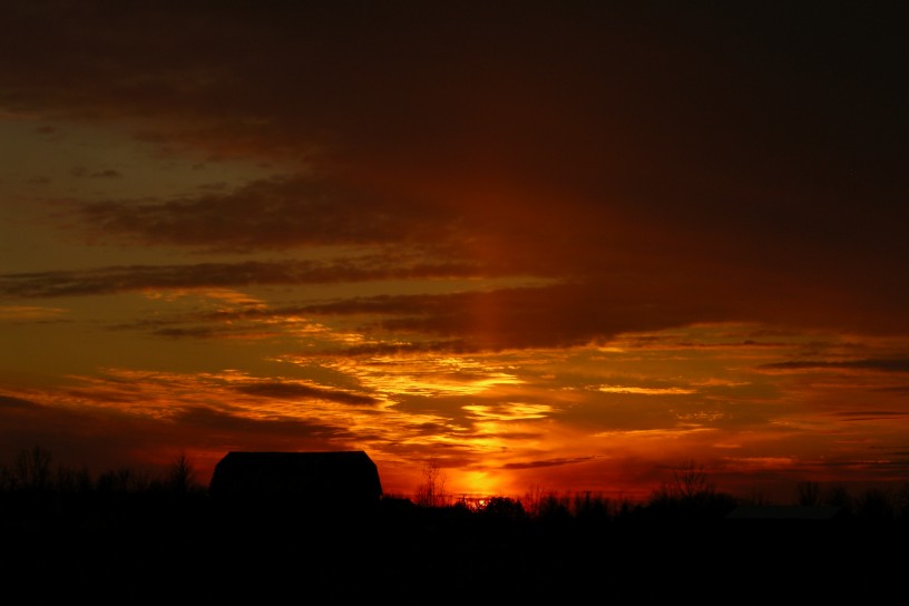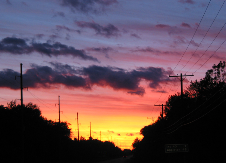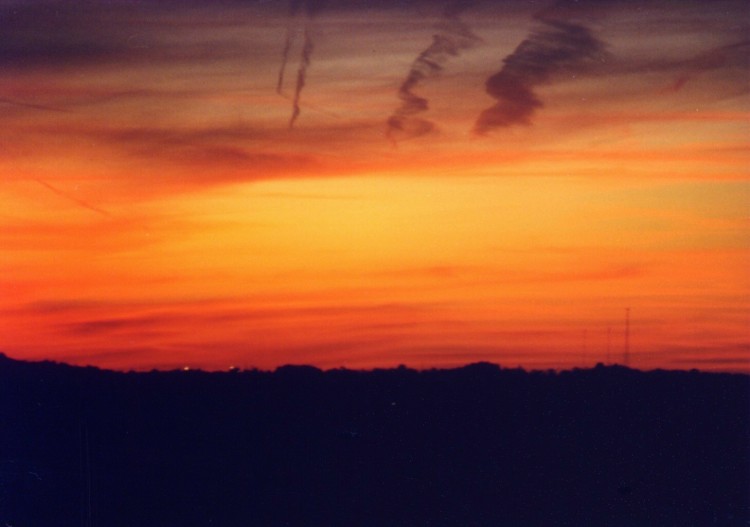 This is a picture I took in April of 2002. I was awakened at 5 AM by my husband to come look at the sunrise. As you can see, it was worth being woken up for!e-mail to: Prairie Wind Stock |