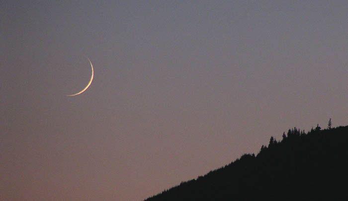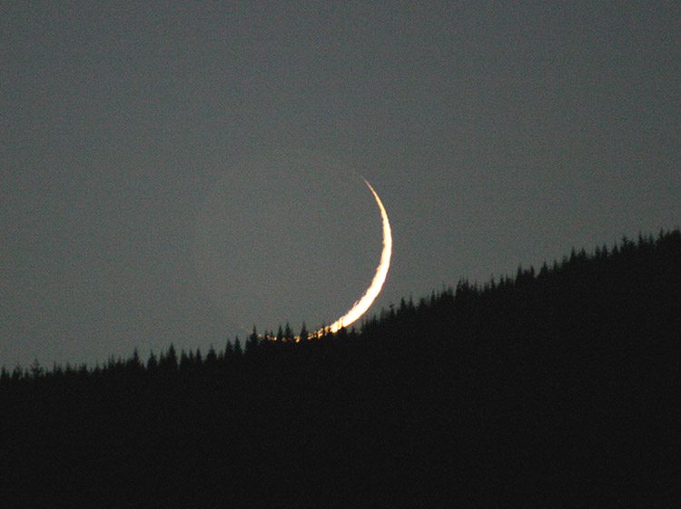 Two day old crescent moon and earthshine setting behind Lyman Hill in Skagit County, Washington State, USA. Image taken June 19, 2004, with a Canon Digital Rebel attached to an 80mm refractor.See more photos by: Wade B Clark Jr |