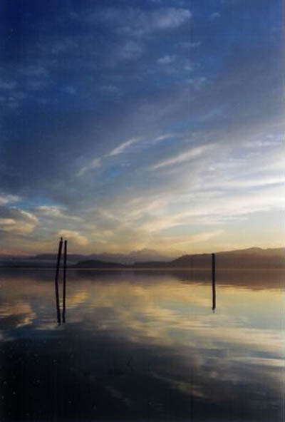 Skagit Bay in N.W. Washington, Mt. Baker in the distance.