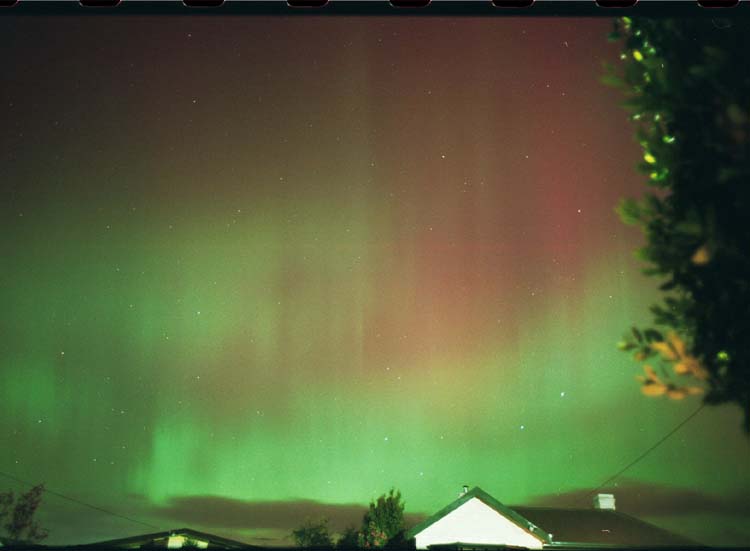 Aurora display, November 7, 2004, taken from my backyard on my 47th birthday!! What a perfect gift <grin>!Looking southeast at Orion and the aurora.