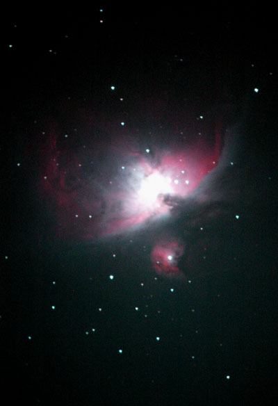 6 copy.jpg (28938 bytes) The Orion nebula was taken with a Cannon digital Rebel and a 10'' telescope at Découverte Observatory. 4 pictures stacked, 1 minute exposure each picture at 1600 ASA