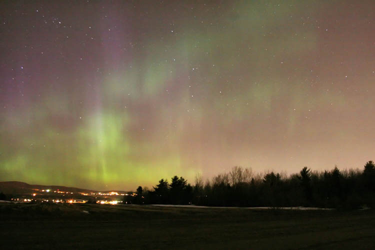 aur11sept051 copy.jpg (41246 bytes)Taken September 11 2005 at Ile D'orléand Québec Canada at 1600ASA exposed 5 to 10 second with a 8mm lens