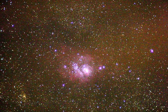 lagune,copy.jpg (75717 bytes)lagune.jpg was taken August 9 2004 with a 4' telescope f5 at 1600ASA exposed 2 minutes